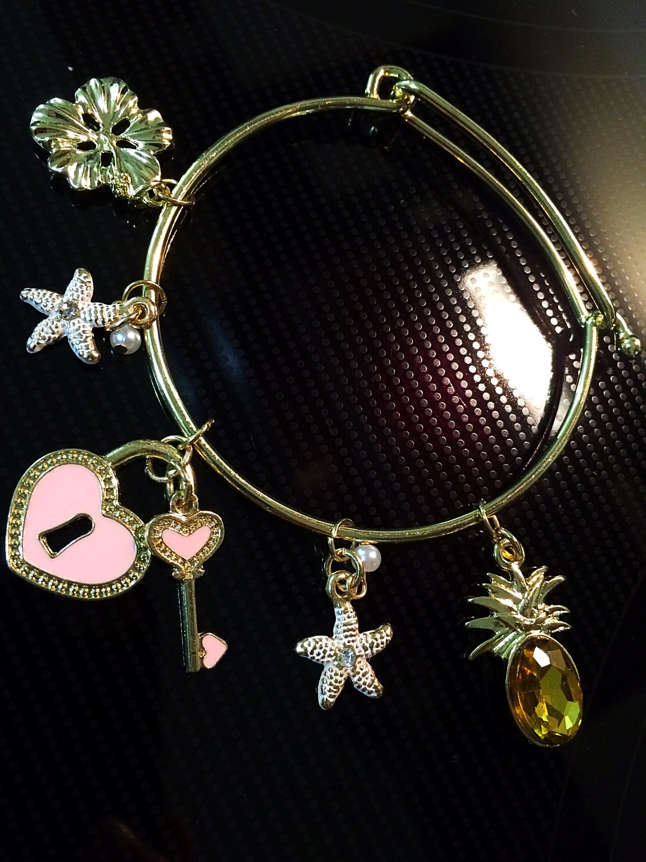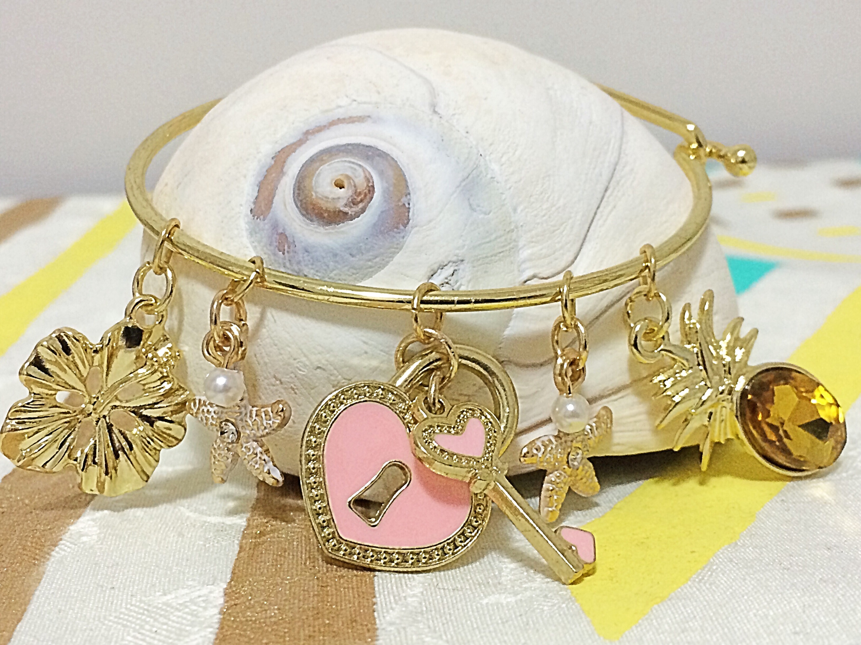 As my heart wander around the craft store, I had stumbled upon these gorgeous charms and have instantly fell in love with their designs. Once I have spread them out on the table, my creativity had gone loose, and thus, another birth of a Fashion accessory named Tropical Romance.