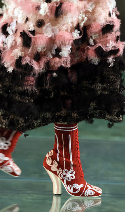 Furs and florals and doll like dresses were the featured designs for Fendi’s 90th Anniversary Fall runway show which was held on top of Rome’s newly restored Trevi fountain. The show which was titled “Legends and Fairytales” showcased a collection adorned with floral, dreamy prints on flowy and fur fabrics, accesorized with embellished purses and lace printed heels. The look was finished with a dewy glow, curly hair tied with lightweight ribbons, black winged eyeliner and nude glossy lips, channeling a porcelain doll’s style. The models including Kendall Jenner and Bella Hadid have presented the designs walking along the waters of the beautiful Trevi fountain. The show have wonderfully achieved to execute its theme of “Legends and Fairy tales” by having its audience experience the magic that the historical Trevi fountain exudes while being surrounded with Fendi’s inspiring collection.
